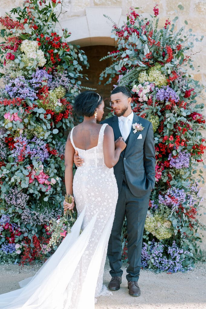 We picture layered color palettes, romantic garden textures and large-scale floral installations that frame the venue’s stone facade. Our inspiration would be deep reds, lilacs and eucalyptus woven into a ceremony backdrop that is an extension of the château’s timeless beauty.